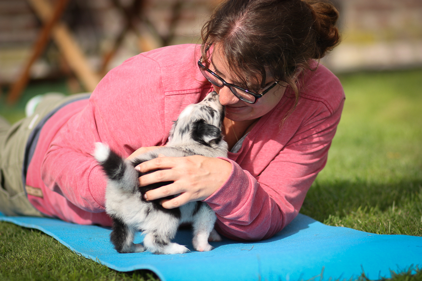 Juhuuu, nach tagelangem Regen konnten die Puppies heute ihre ersten Abenteuer im Freien genießen. Ich habe unendlich viele Fotos gemacht und versucht euch hier eine kleine Auswahl zu zeigen. Alle fünf sind absolut einzigartige Persönlichkeiten und es ist so schön zu sehen, wie sie sich entwickeln ♥ Wir könnten nicht zufriedener sein 🙂
